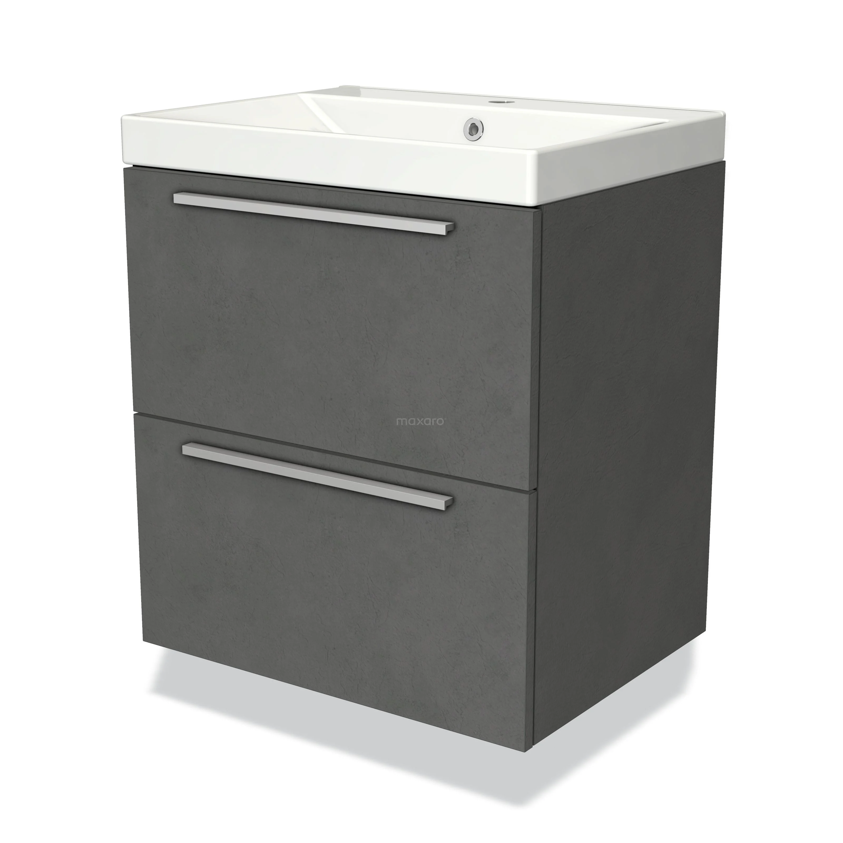 Modulo Bathroom furniture with sink | 60 cm Dark grey concrete Flat front Ceramic 2 Stacked drawers