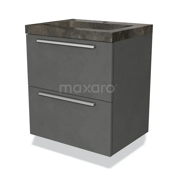 Modulo Bathroom furniture with sink | 60 cm Dark grey concrete Flat front Natural stone 2 Stacked drawers