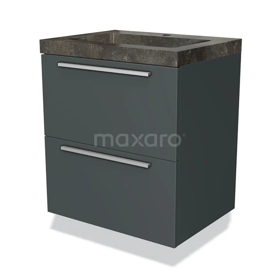 Modulo Bathroom furniture with sink | 60 cm Dark grey Flat front Natural stone 2 Stacked drawers
