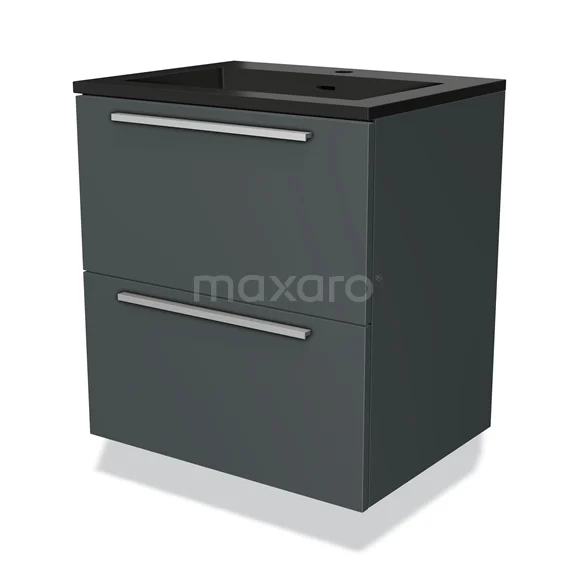 Modulo Bathroom furniture with sink | 60 cm Dark grey Flat front Quartz 2 Stacked drawers