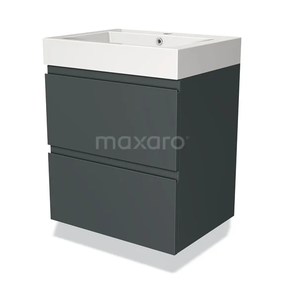 Modulo Bathroom furniture with sink | 60 cm Dark grey Handle-less front Mineral marble 2 Stacked drawers