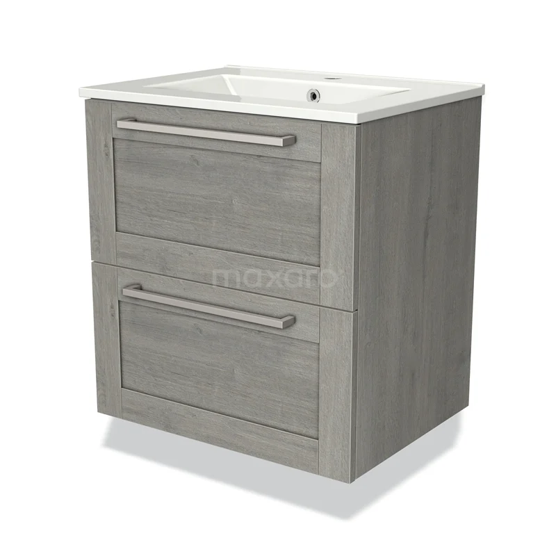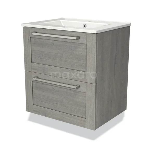 Modulo Bathroom furniture with sink | 60 cm Grey oak Frame front Ceramic 2 Stacked drawers