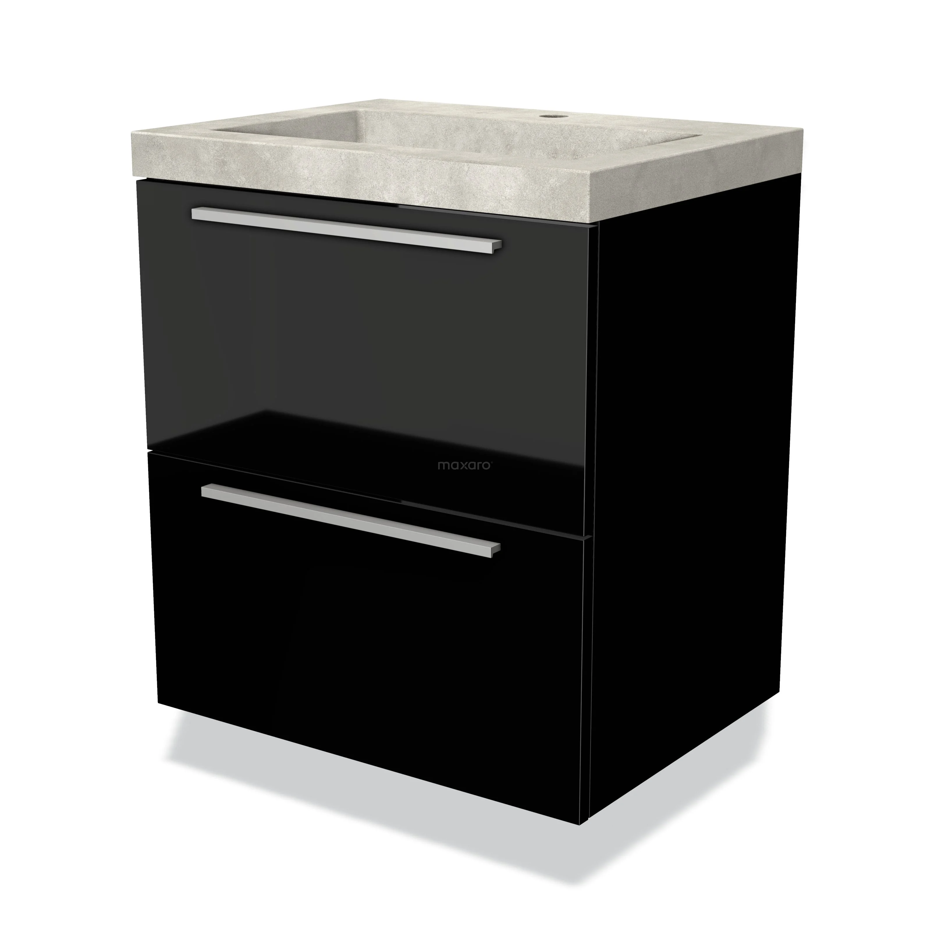 Modulo Bathroom furniture with sink | 60 cm High-gloss black Flat front Concrete 2 Stacked drawers