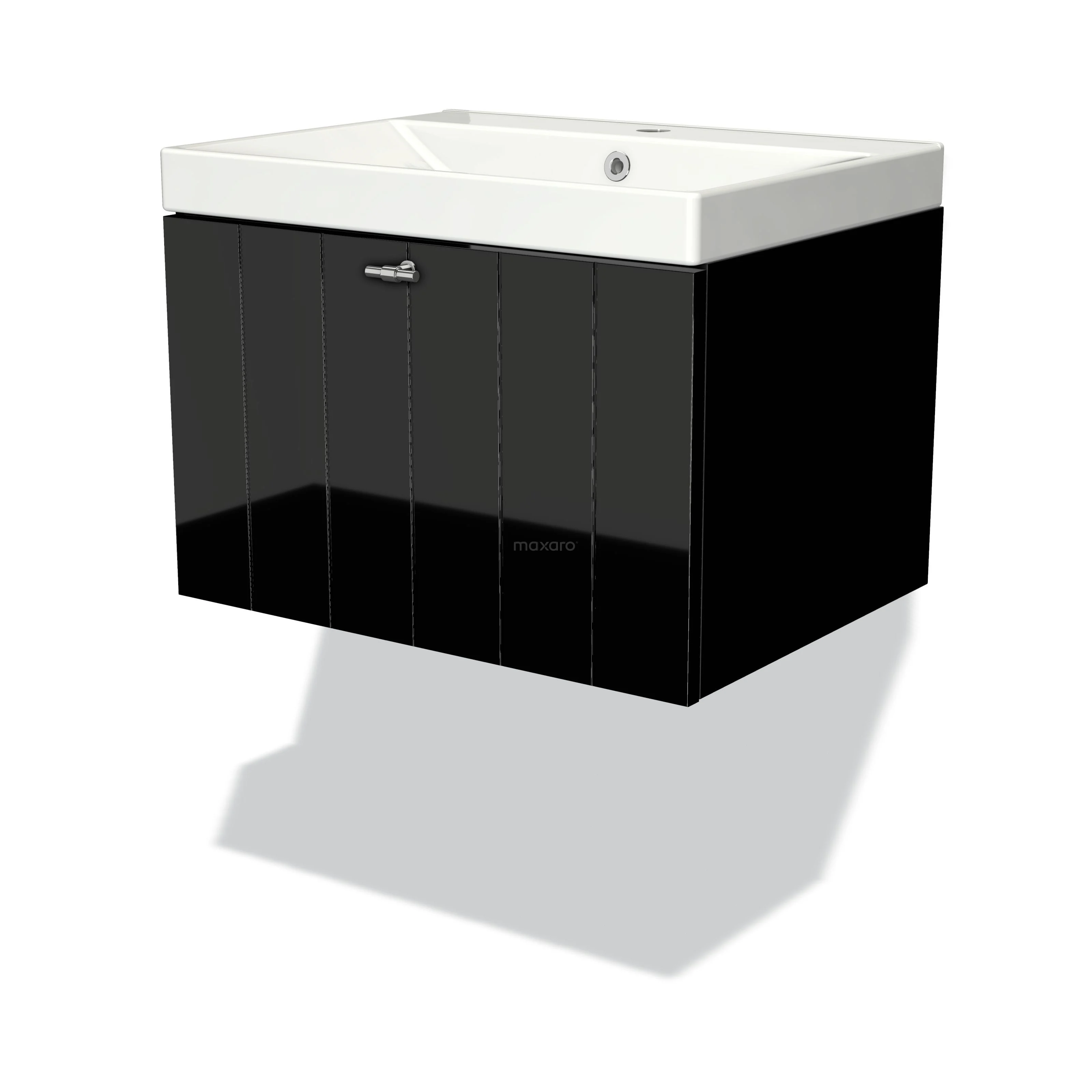 Modulo Bathroom furniture with sink | 60 cm High-gloss black Slat front Ceramic 1 drawer