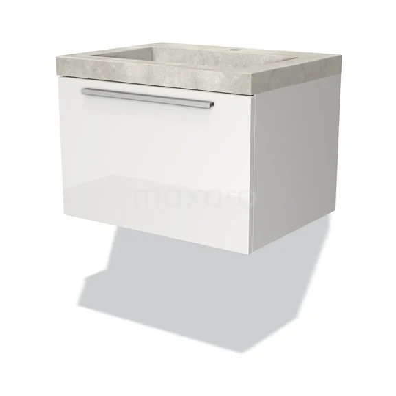 Modulo Bathroom furniture with sink | 60 cm High-gloss white Flat front Concrete 1 drawer