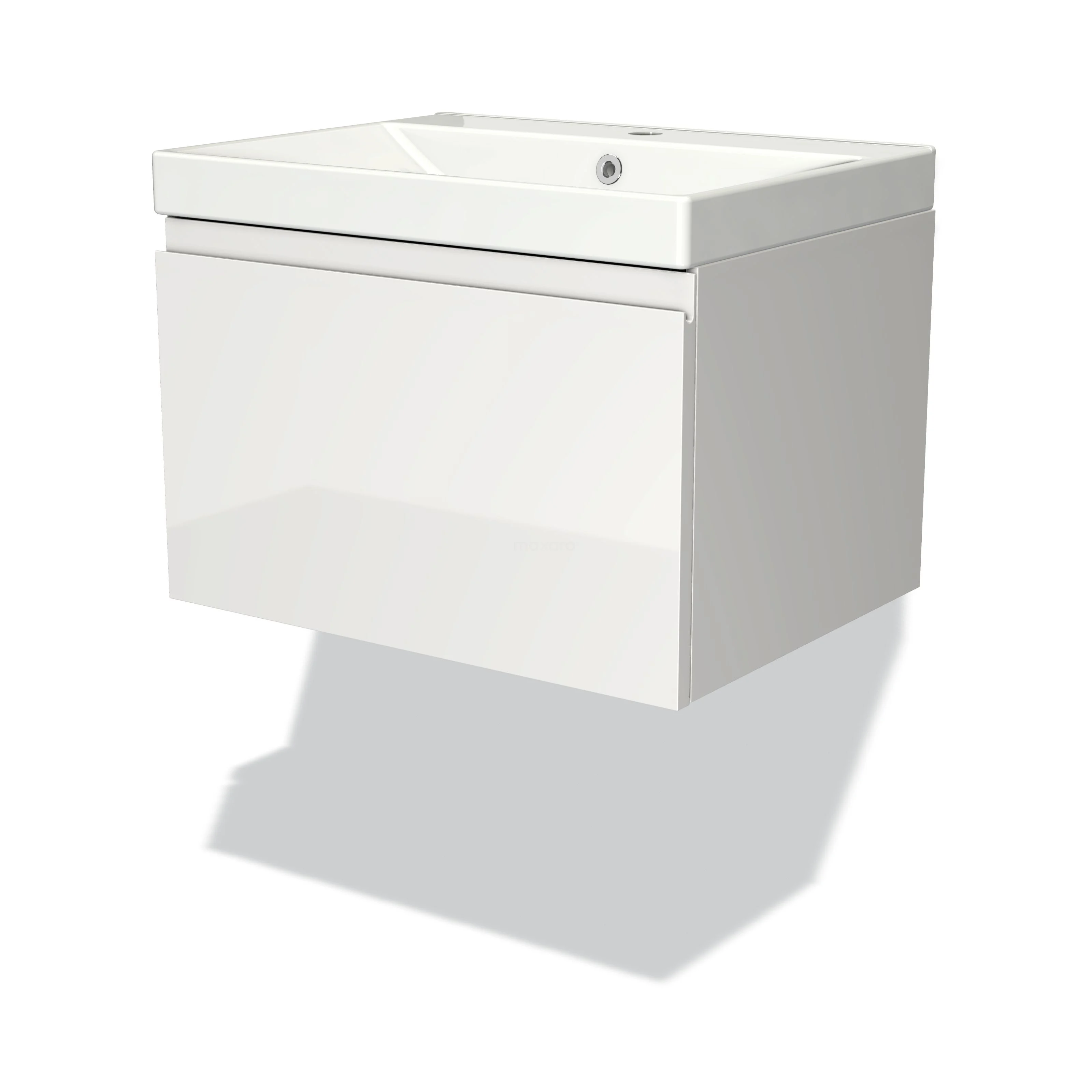 Modulo Bathroom furniture with sink | 60 cm High-gloss white Handle-less front Ceramic 1 drawer