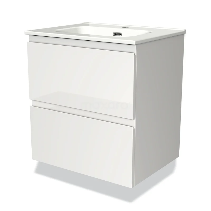 Modulo Bathroom furniture with sink | 60 cm High-gloss white Handle-less front Ceramic 2 Stacked drawers
