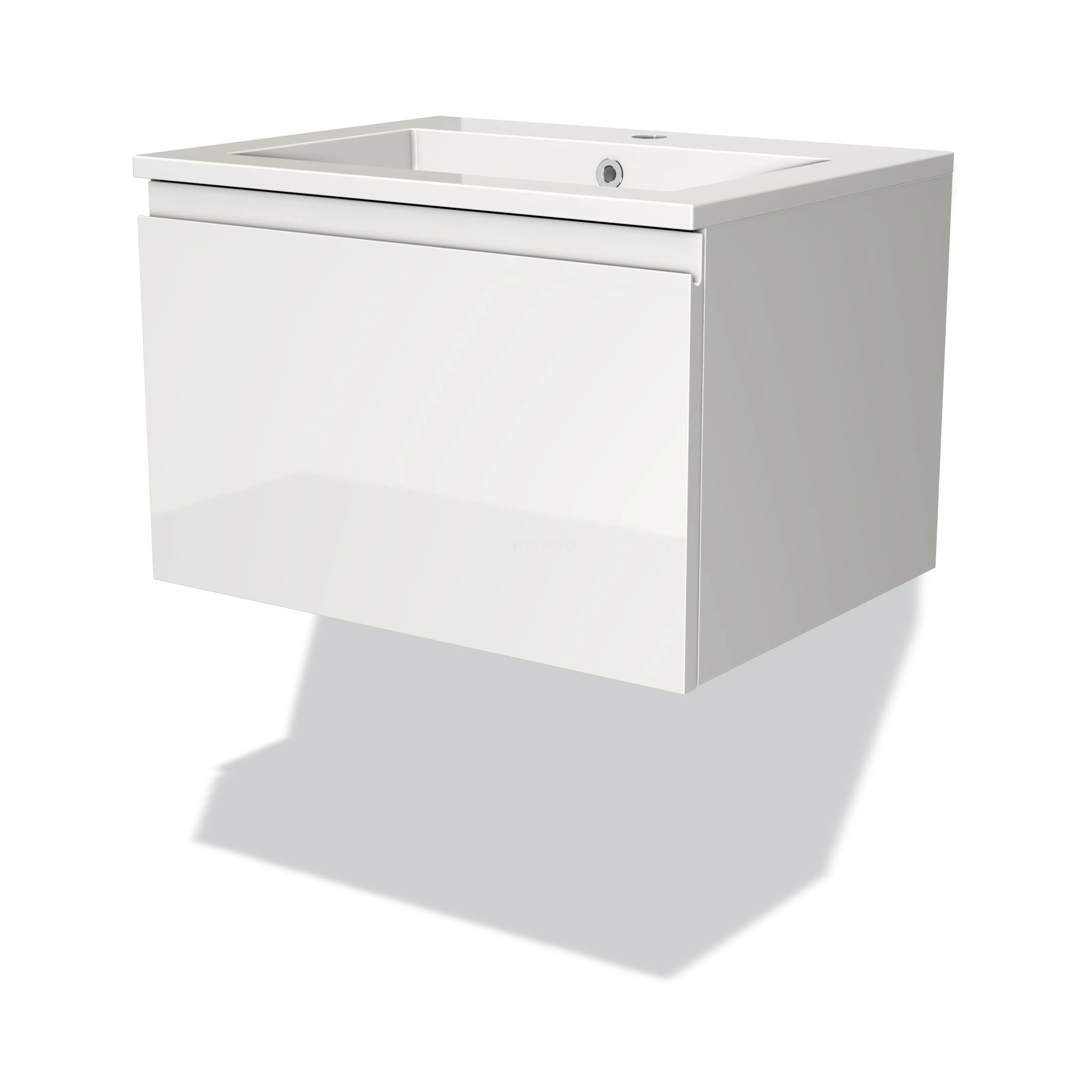 Modulo Bathroom furniture with sink | 60 cm High-gloss white Handle-less front Mineral marble 1 drawer