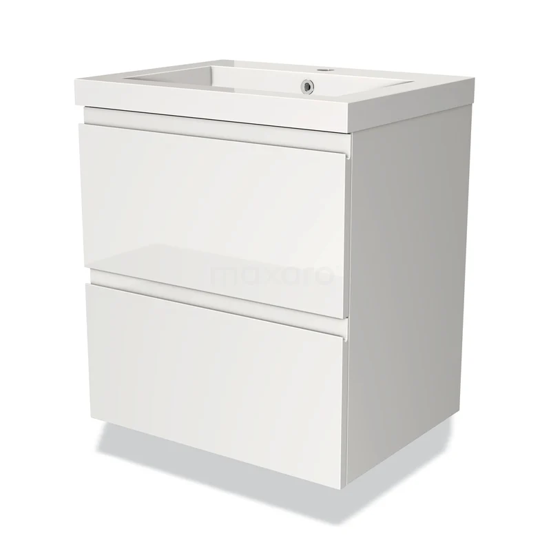 Modulo Bathroom furniture with sink | 60 cm High-gloss white Handle-less front Mineral marble 2 Stacked drawers