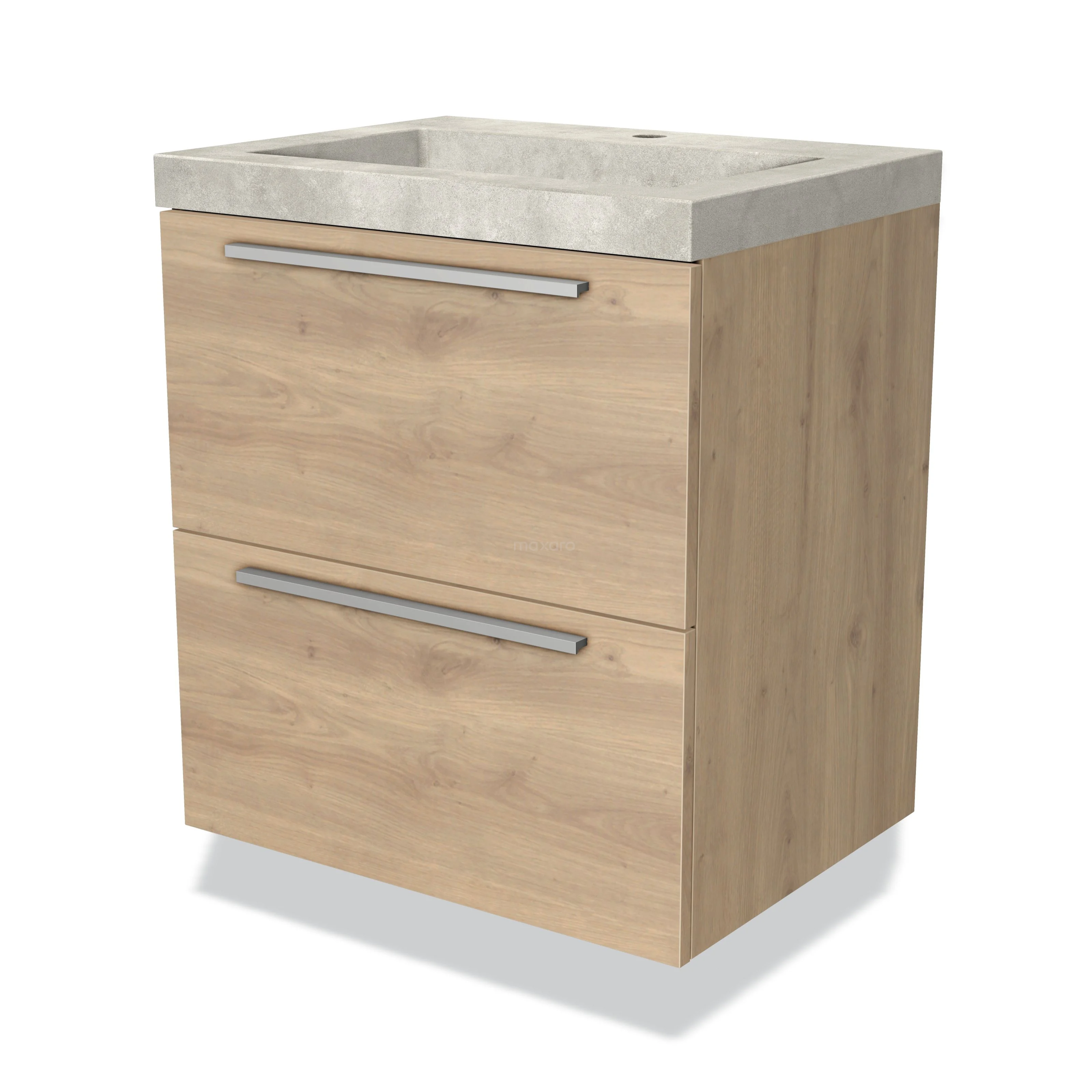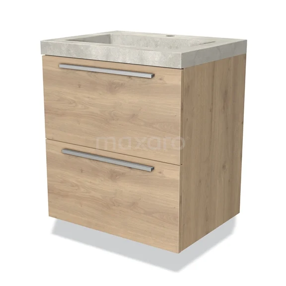Modulo Bathroom furniture with sink | 60 cm Light brown oak Flat front Concrete 2 Stacked drawers