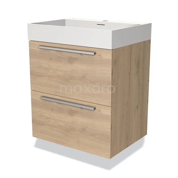 Modulo Bathroom furniture with sink | 60 cm Light brown oak Flat front Solid surface 2 Stacked drawers