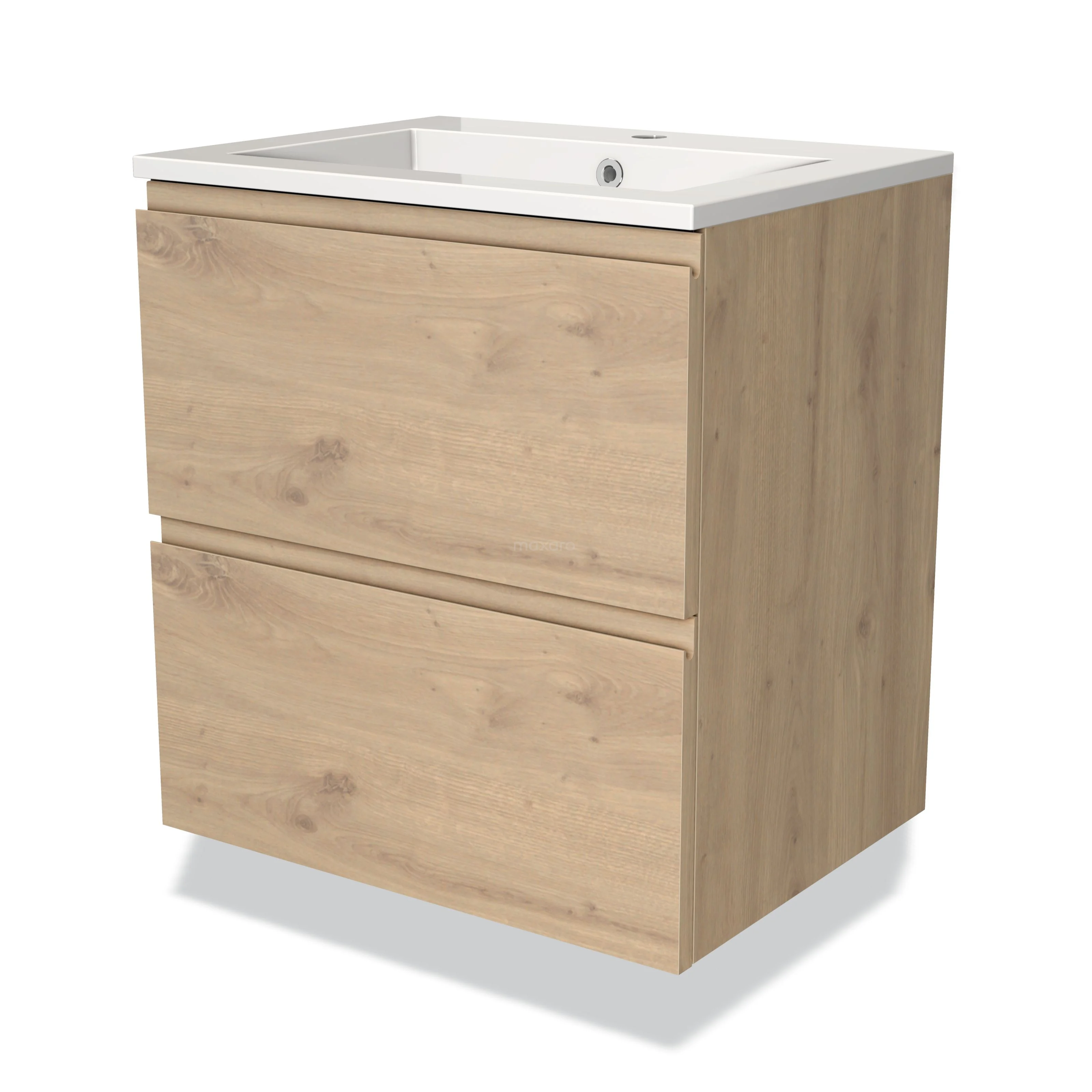 Modulo Bathroom furniture with sink | 60 cm Light brown oak Handle-less front Mineral marble 2 Stacked drawers