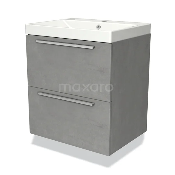 Modulo Bathroom furniture with sink | 60 cm Light grey concrete Flat front Ceramic 2 Stacked drawers