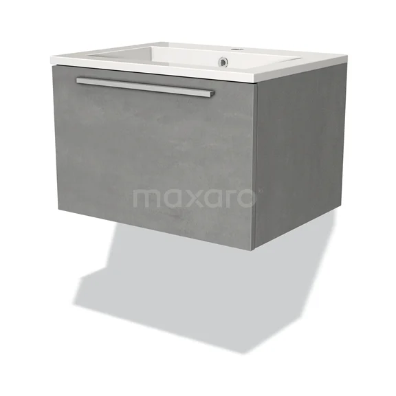 Modulo Bathroom furniture with sink | 60 cm Light grey concrete Flat front Mineral marble 1 drawer