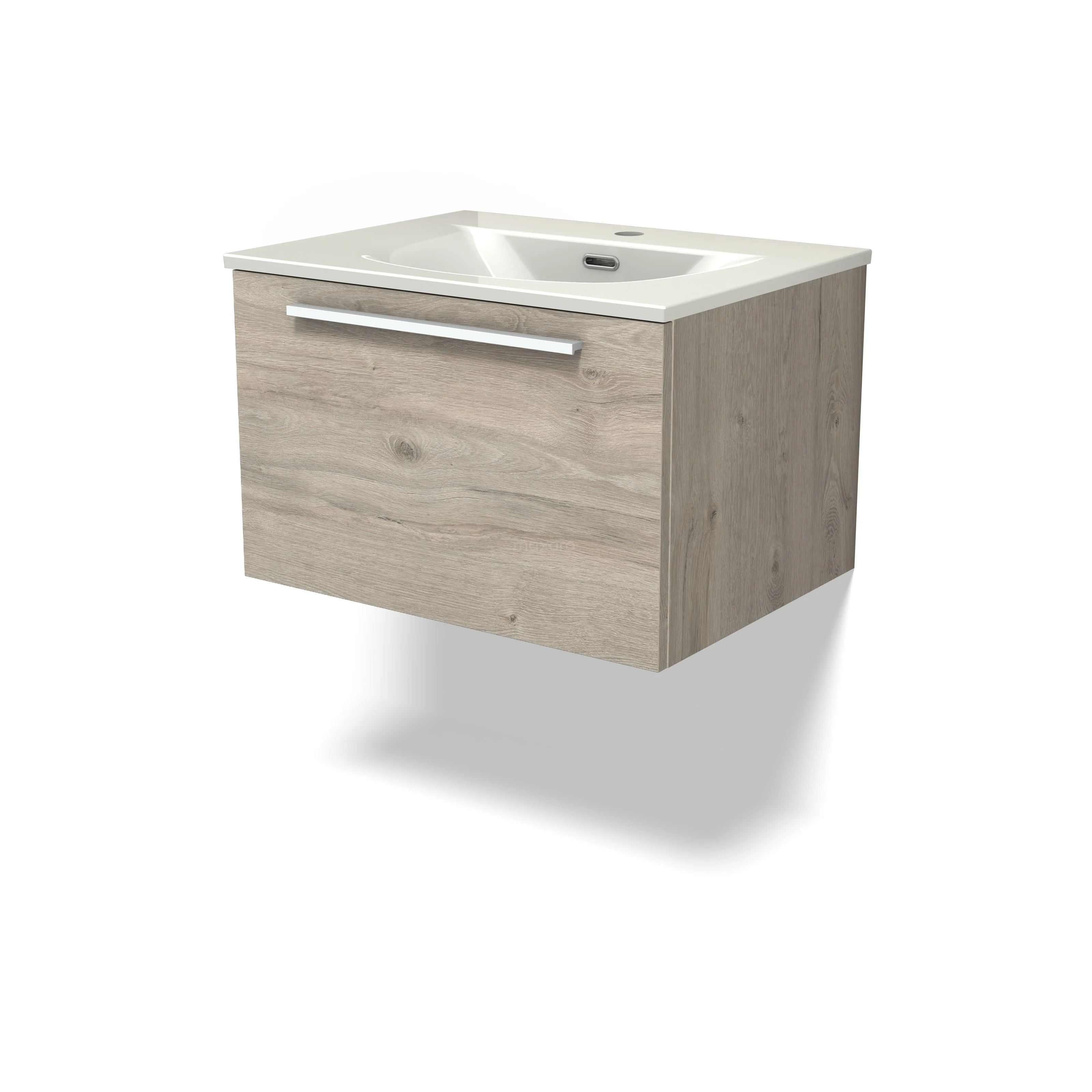 Modulo Bathroom furniture with sink | 60 cm Light grey oak Flat front Ceramic 1 drawer