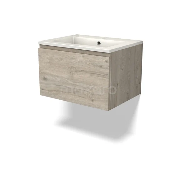 Modulo Bathroom furniture with sink | 60 cm Light grey oak Handle-less front Mineral marble 1 drawer