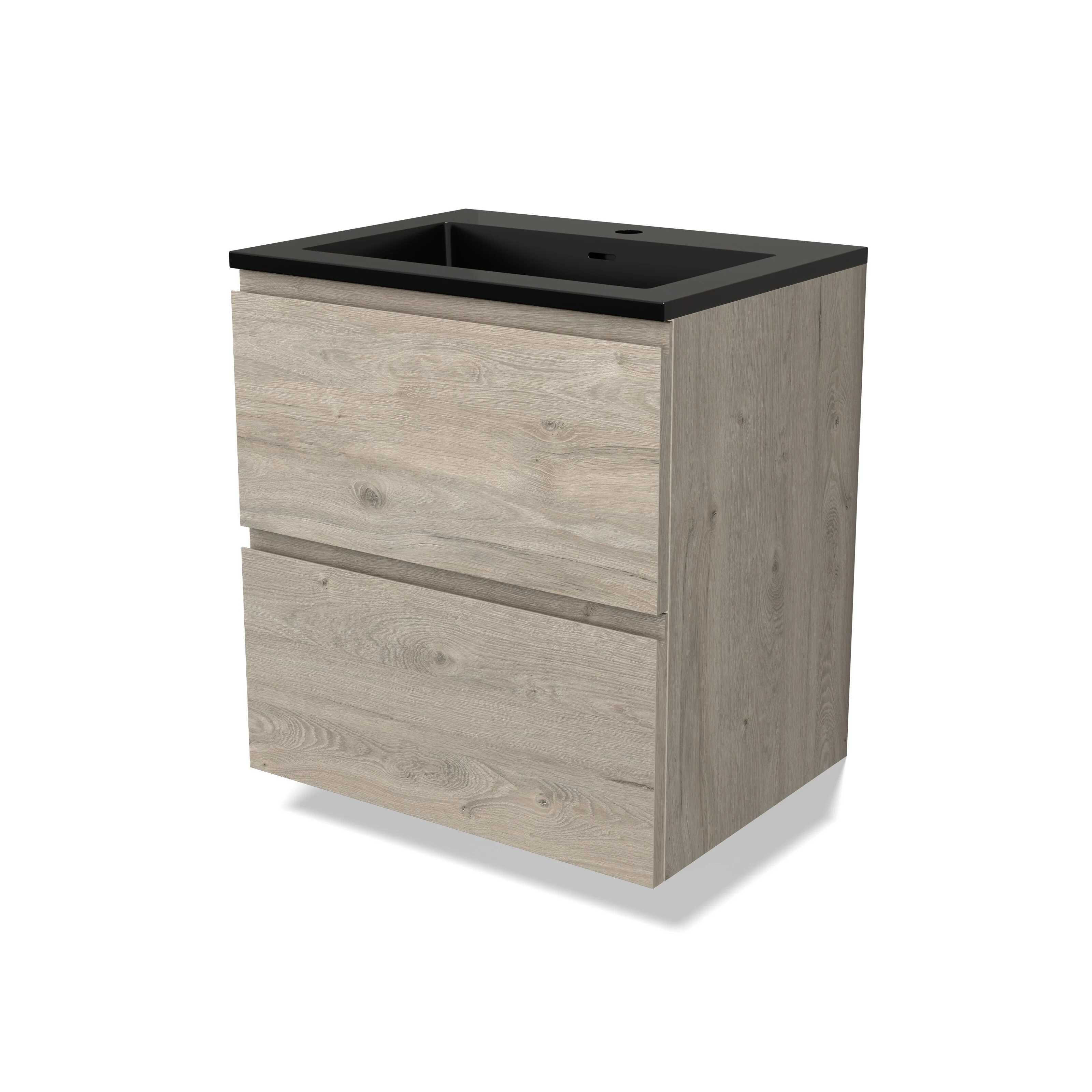 Modulo Bathroom furniture with sink | 60 cm Light grey oak Handle-less front Quartz 2 Stacked drawers