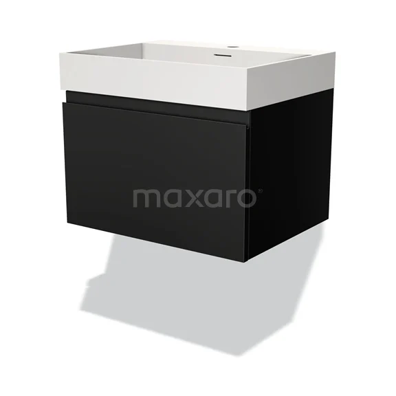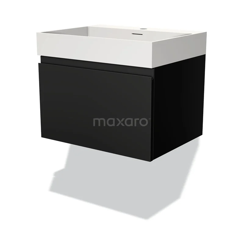 Modulo Bathroom furniture with sink | 60 cm Matte black Handle-less front Solid surface 1 drawer