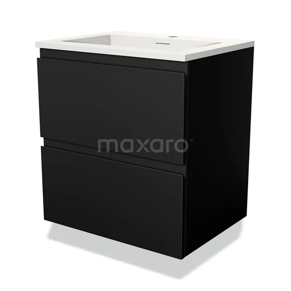 Modulo Bathroom furniture with sink | 60 cm Matte black Handle-less front Solid surface 2 Stacked drawers