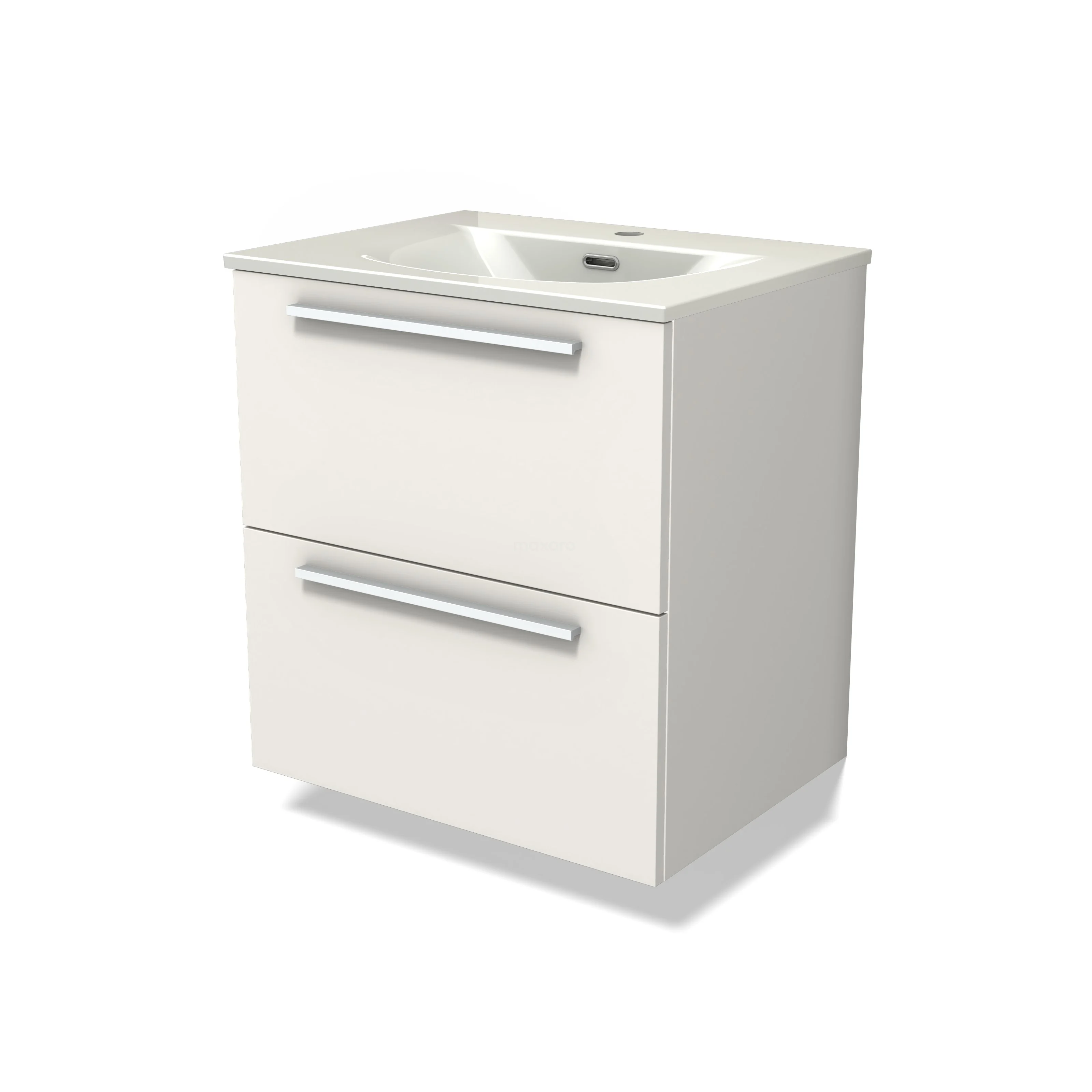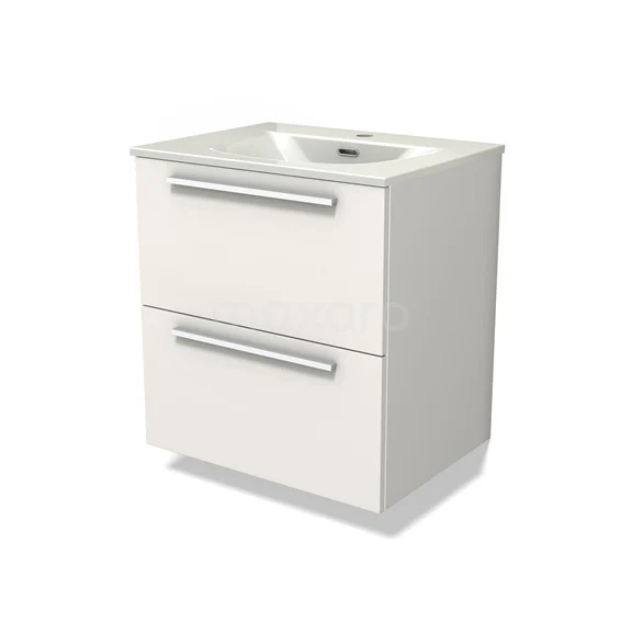 Modulo Bathroom furniture with sink | 60 cm Matte white Flat front Ceramic 2 Stacked drawers