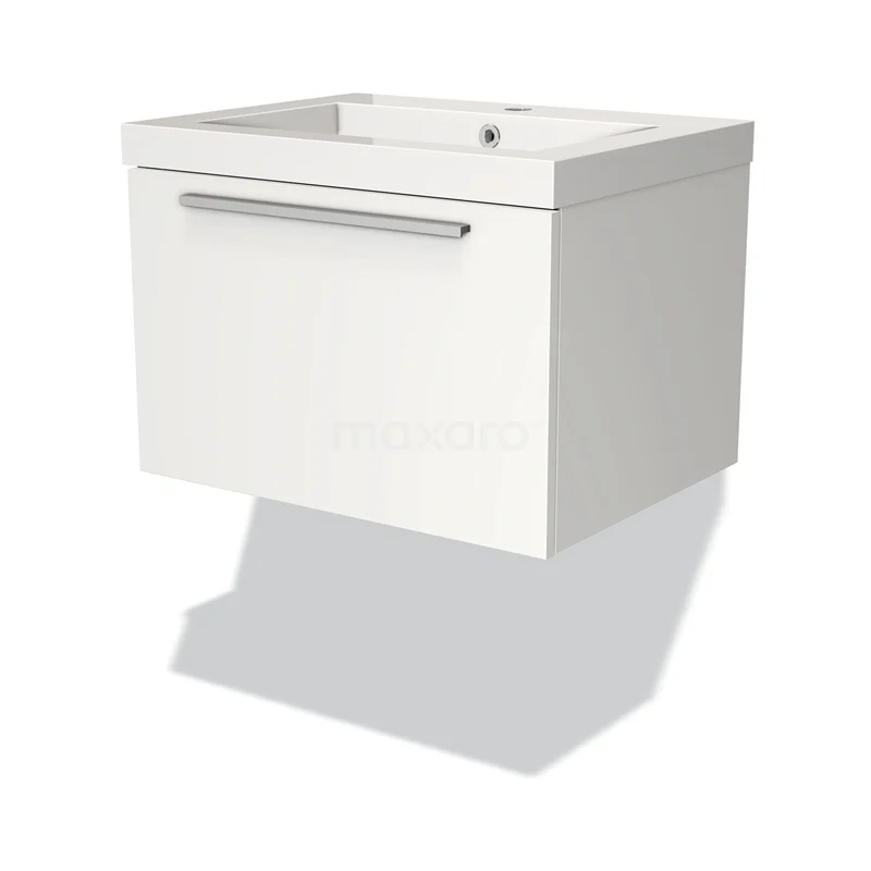 Modulo Bathroom furniture with sink | 60 cm Matte white Flat front Mineral marble 1 drawer
