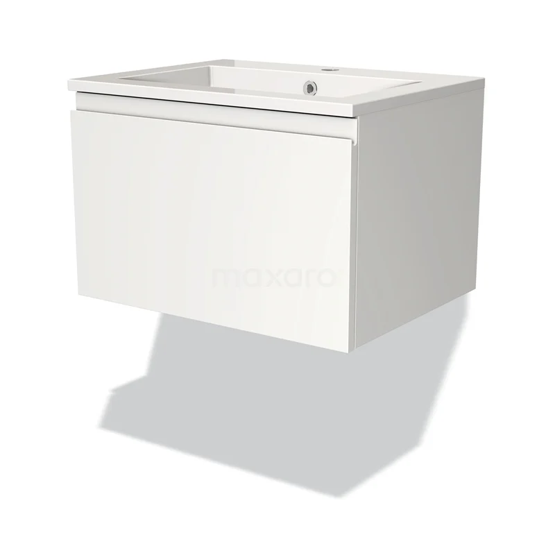 Modulo Bathroom furniture with sink | 60 cm Matte white Handle-less front Mineral marble 1 drawer