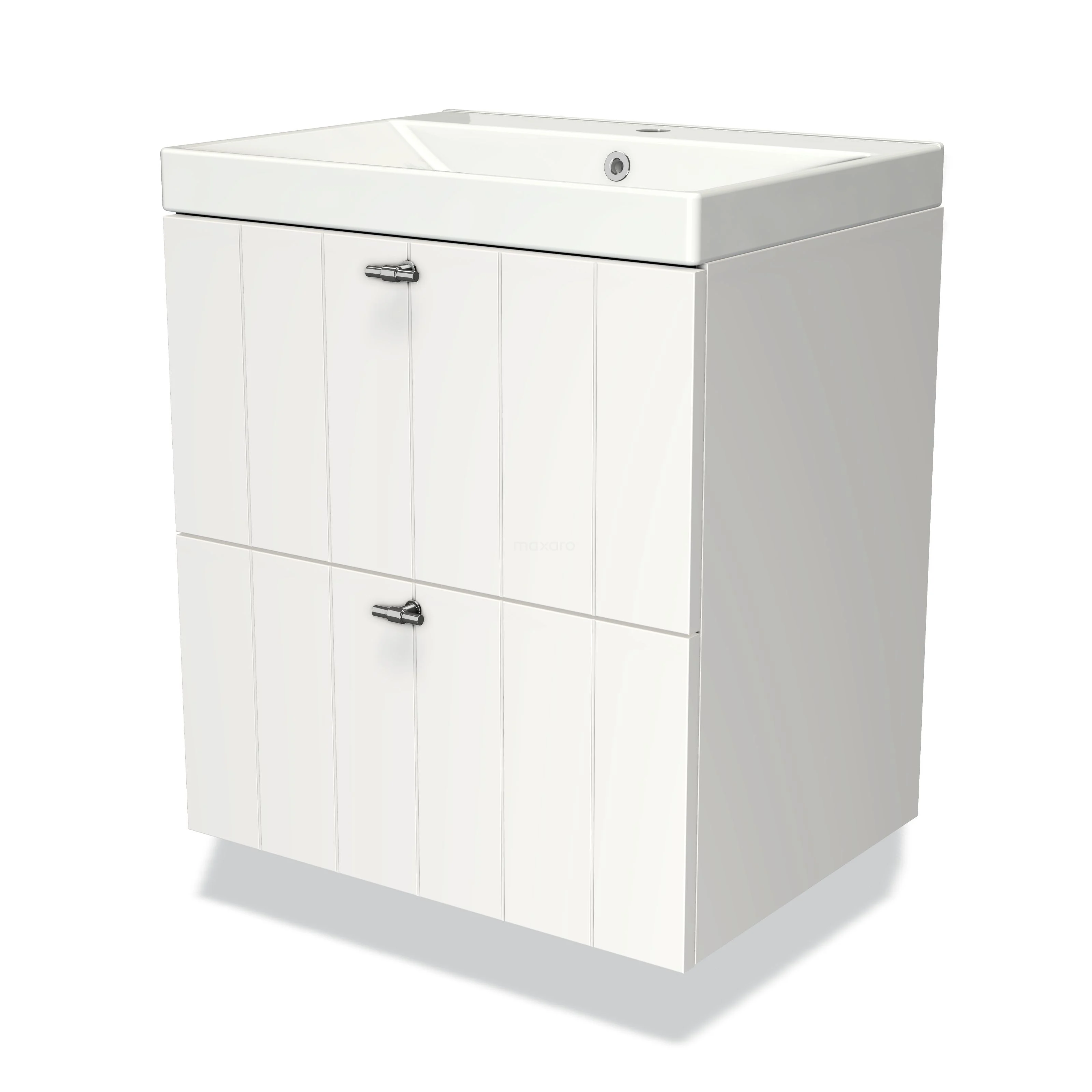 Modulo Bathroom furniture with sink | 60 cm Matte white Slat front Ceramic 2 Stacked drawers