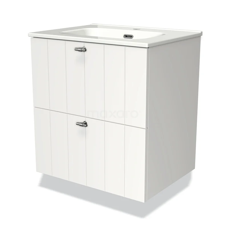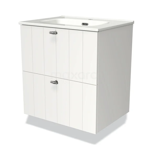 Modulo Bathroom furniture with sink | 60 cm Matte white Slat front Ceramic 2 Stacked drawers