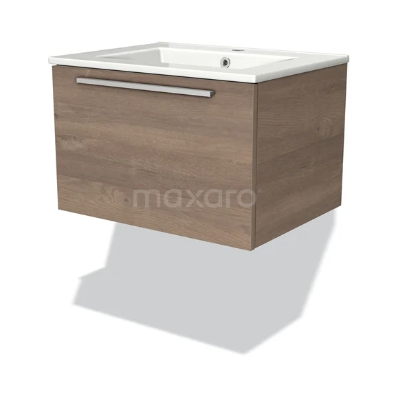 Modulo Bathroom furniture with sink | 60 cm Mid brown oak Flat front Ceramic 1 drawer