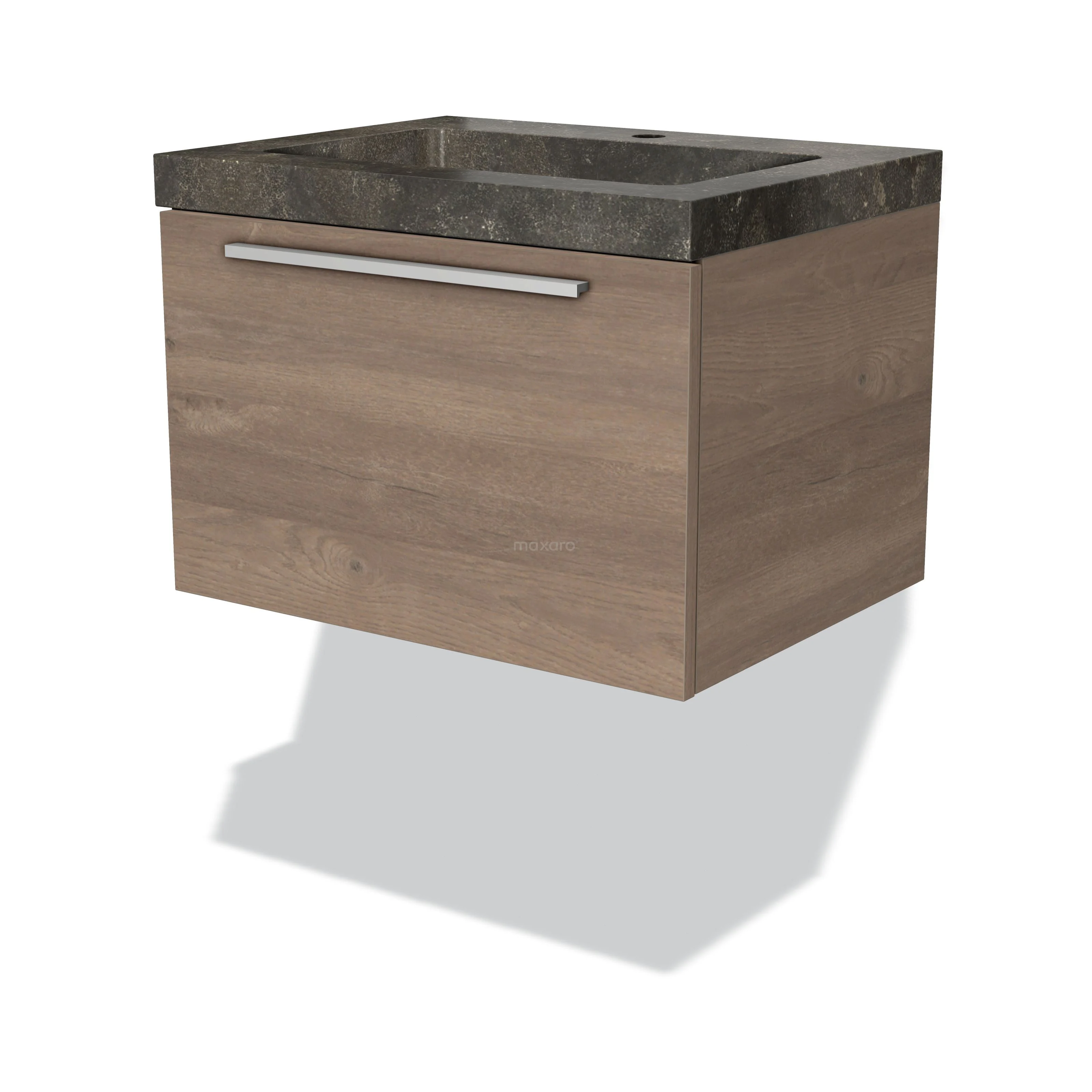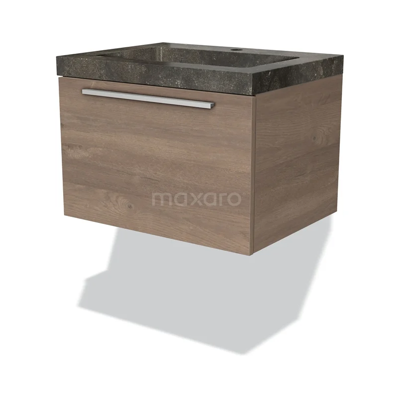 Modulo Bathroom furniture with sink | 60 cm Mid brown oak Flat front Natural stone 1 drawer