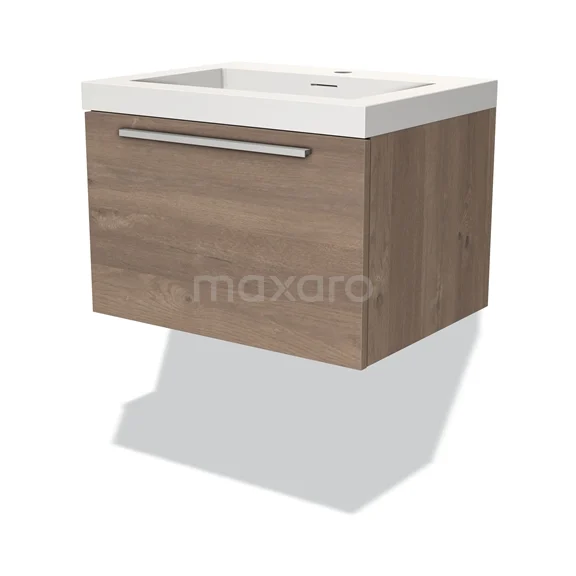 Modulo Bathroom furniture with sink | 60 cm Mid brown oak Flat front Solid surface 1 drawer