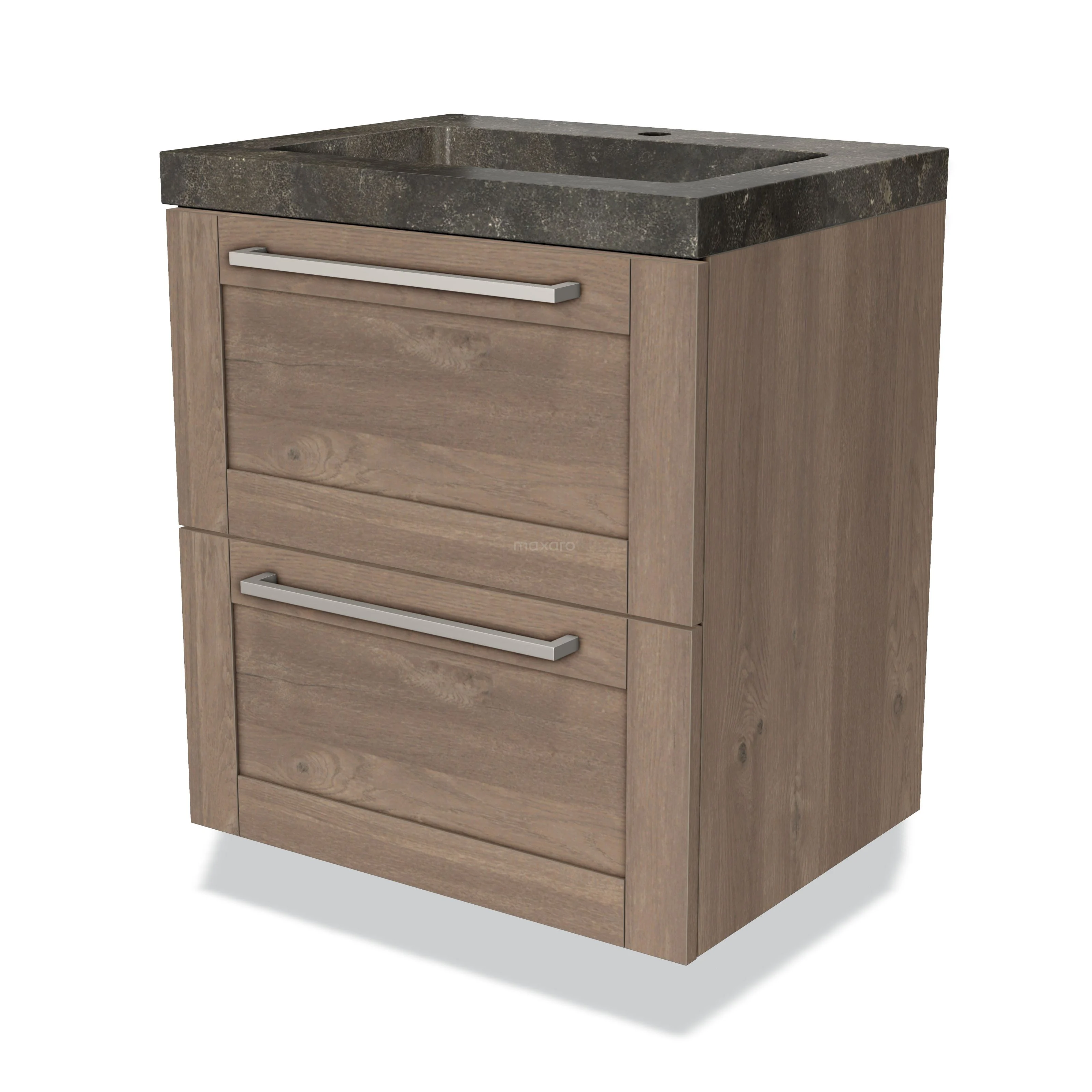 Modulo Bathroom furniture with sink | 60 cm Mid brown oak Frame front Natural stone 2 Stacked drawers