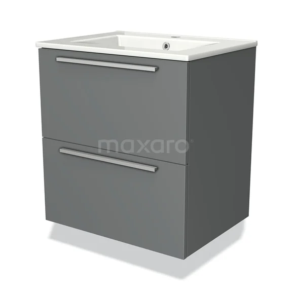 Modulo Bathroom furniture with sink | 60 cm Mid grey Flat front Ceramic 2 Stacked drawers