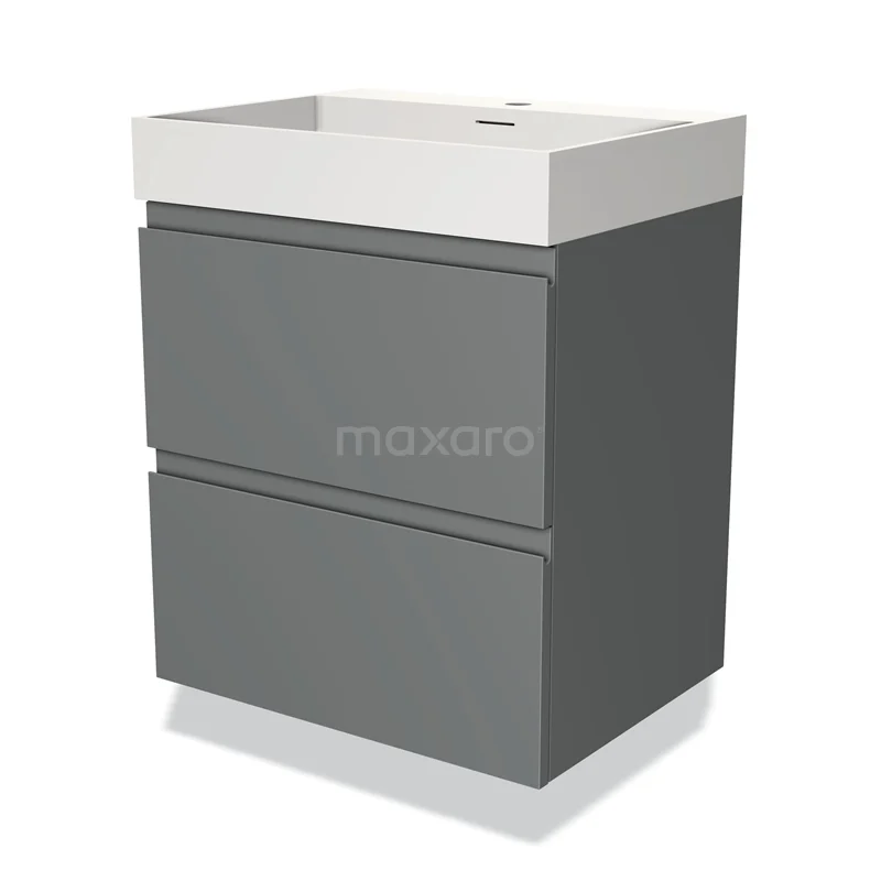 Modulo Bathroom furniture with sink | 60 cm Mid grey Handle-less front Solid surface 2 Stacked drawers