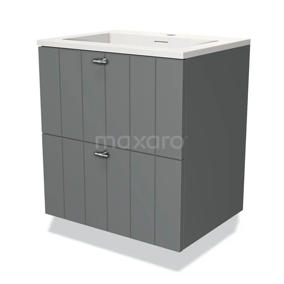 Modulo Bathroom furniture with sink | 60 cm Mid grey Slat front Solid surface 2 Stacked drawers