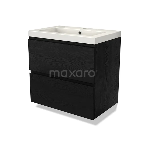 Modulo Bathroom furniture with sink | 70 cm Black oak Handle-less front Mineral marble 2 Stacked drawers
