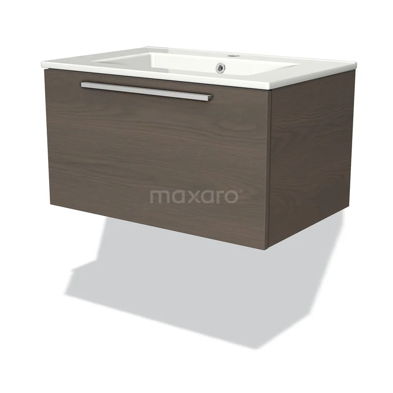 Modulo Bathroom furniture with sink | 70 cm Dark brown oak Flat front Ceramic 1 drawer