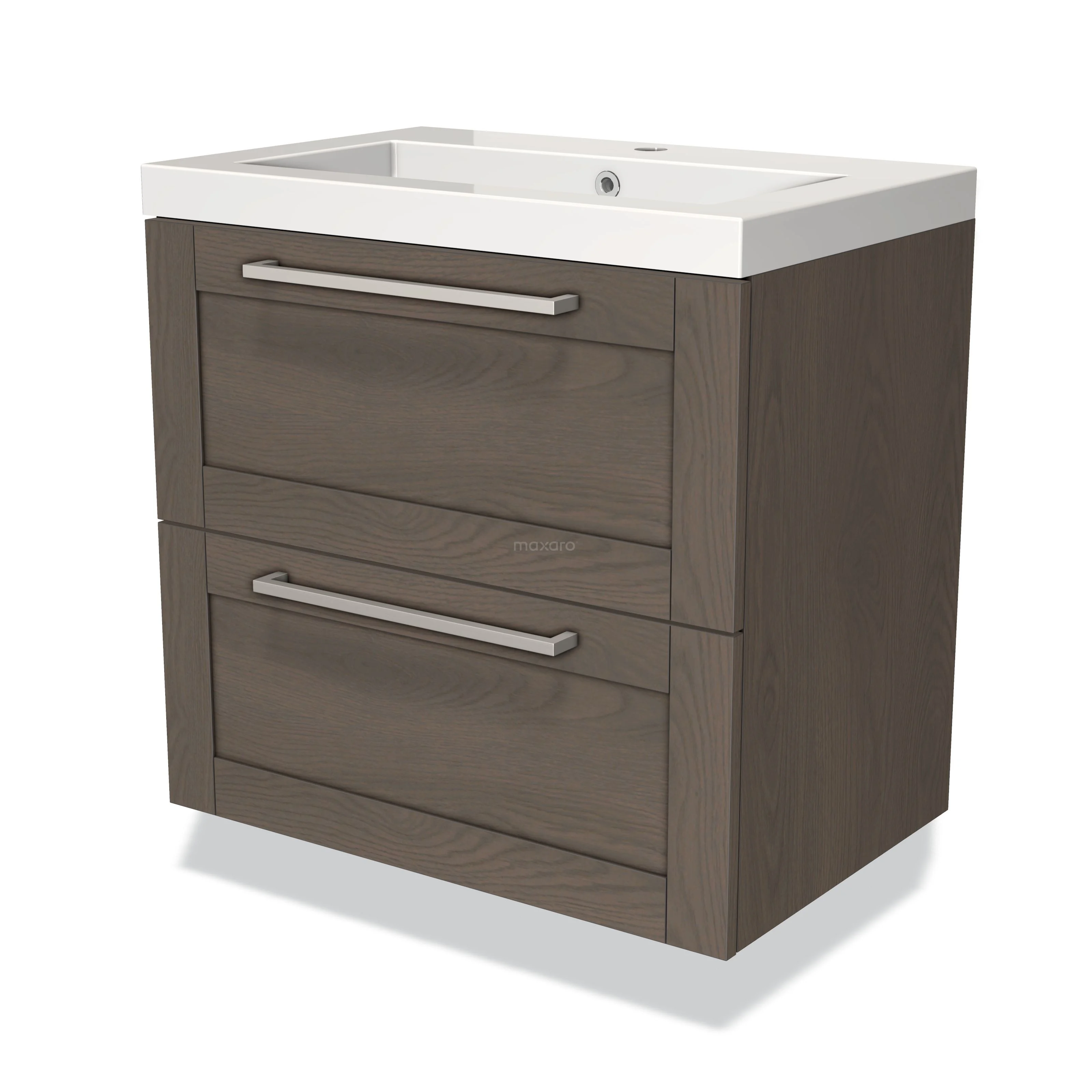 Stylish design The stylish design makes this bathroom unit the eye-catcher of your bathroom. The lower cabinet features a framed front and has a dark brown oak finish. This beautiful oak look creates a warm atmosphere in your bathroom interior. In addition, the framed front provides a classic touch. You will need to joint the handles yourself. These are available in various colours and shapes
