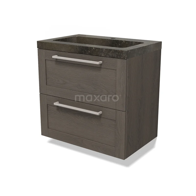 Modulo Bathroom furniture with sink | 70 cm Dark brown oak Frame front Natural stone 2 Stacked drawers