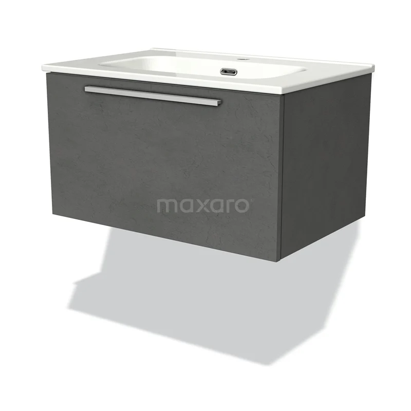 Modulo Bathroom furniture with sink | 70 cm Dark grey concrete Flat front Ceramic 1 drawer