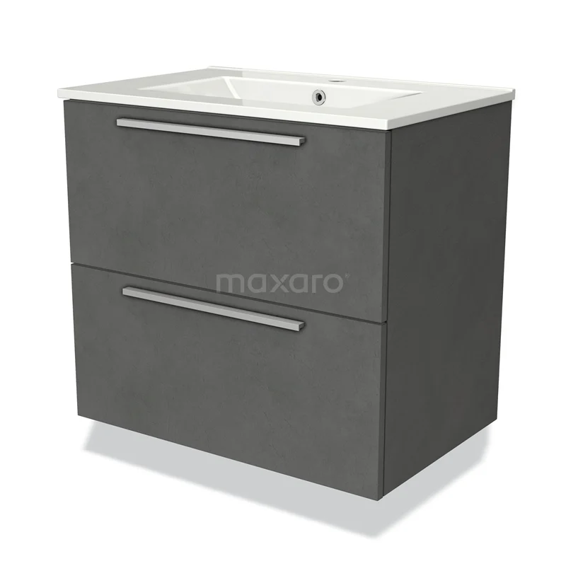 Modulo Bathroom furniture with sink | 70 cm Dark grey concrete Flat front Ceramic 2 Stacked drawers