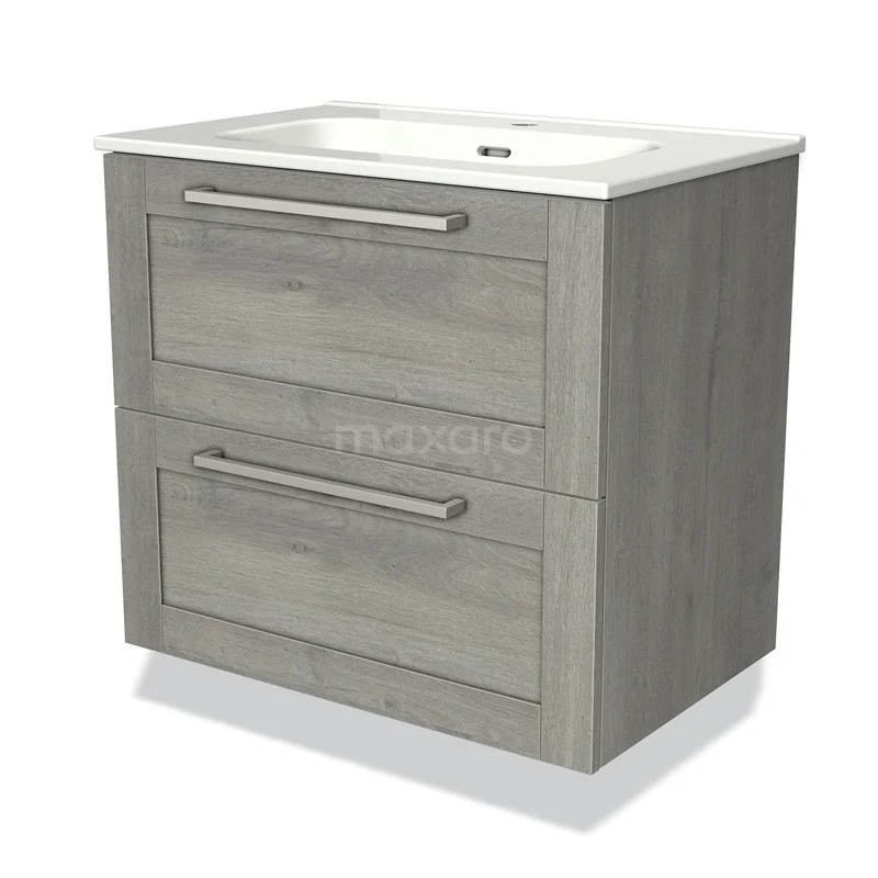 Modulo Bathroom furniture with sink | 70 cm Grey oak Frame front Ceramic 2 Stacked drawers
