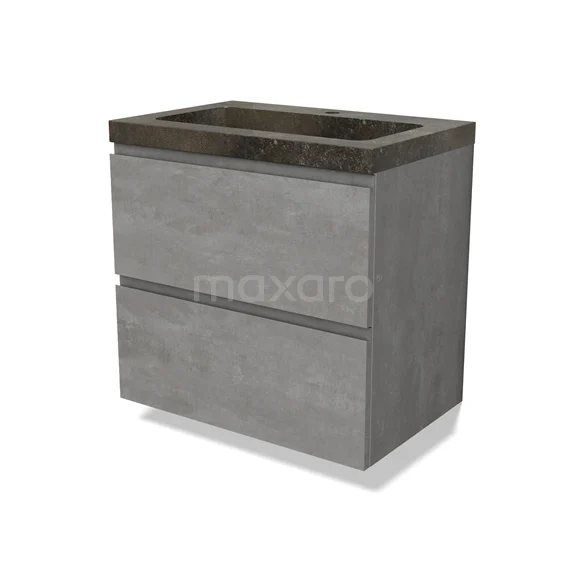 Modulo Bathroom furniture with sink | 70 cm Light grey concrete Handle-less front Natural stone 2 Stacked drawers