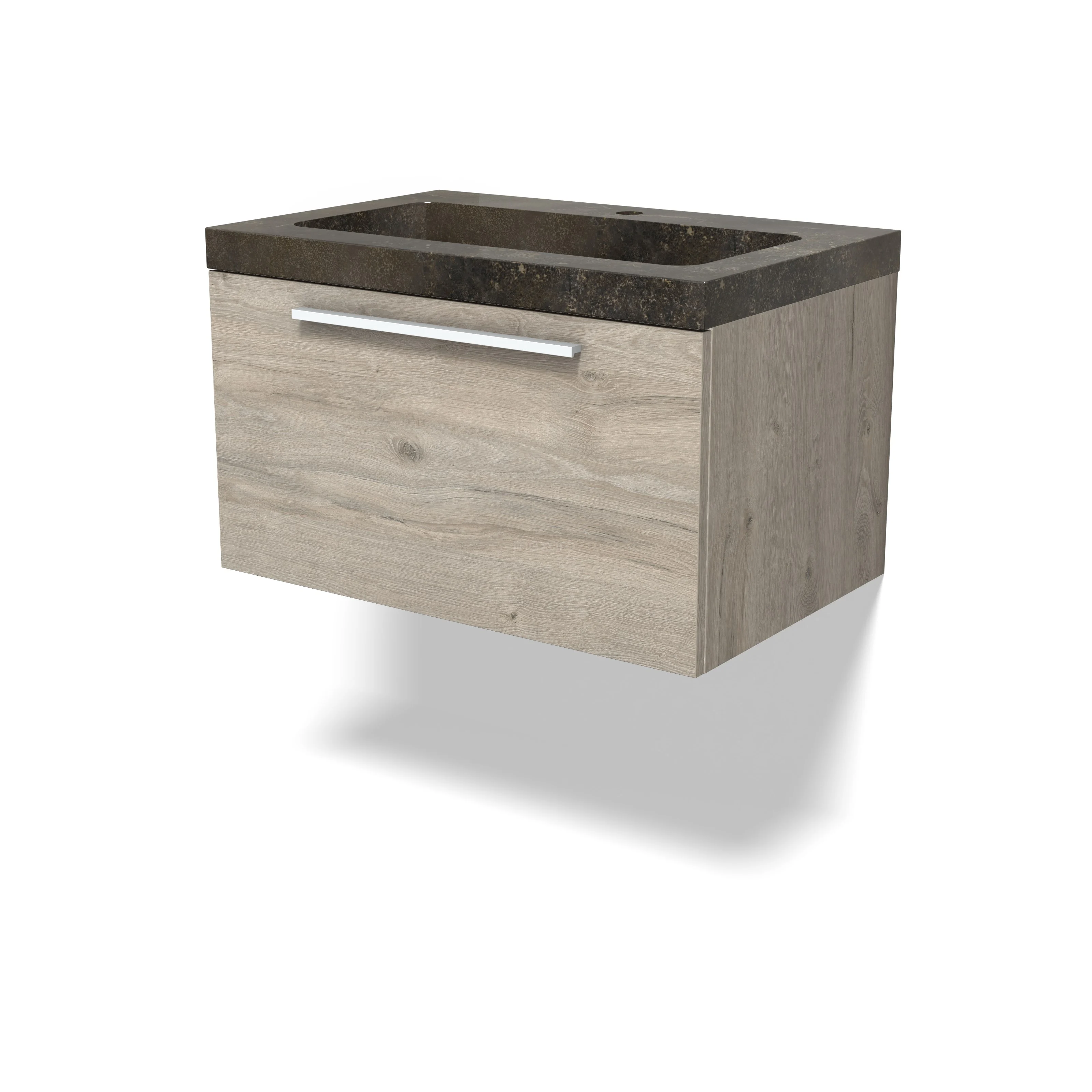 Modulo Bathroom furniture with sink | 70 cm Light grey oak Flat front Natural stone 1 drawer