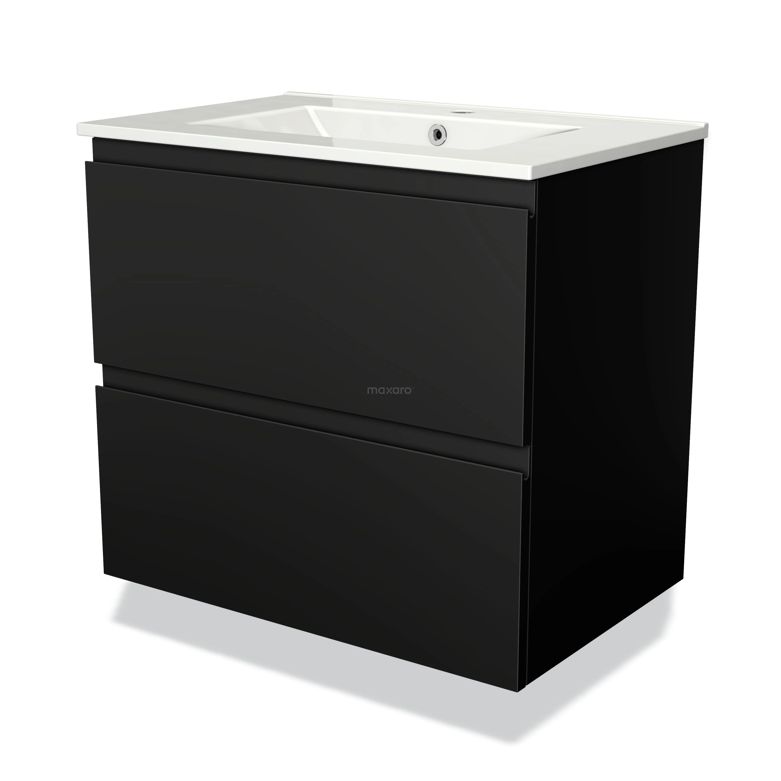 Modulo Bathroom furniture with sink | 70 cm Matte black Handle-less front Ceramic 2 Stacked drawers