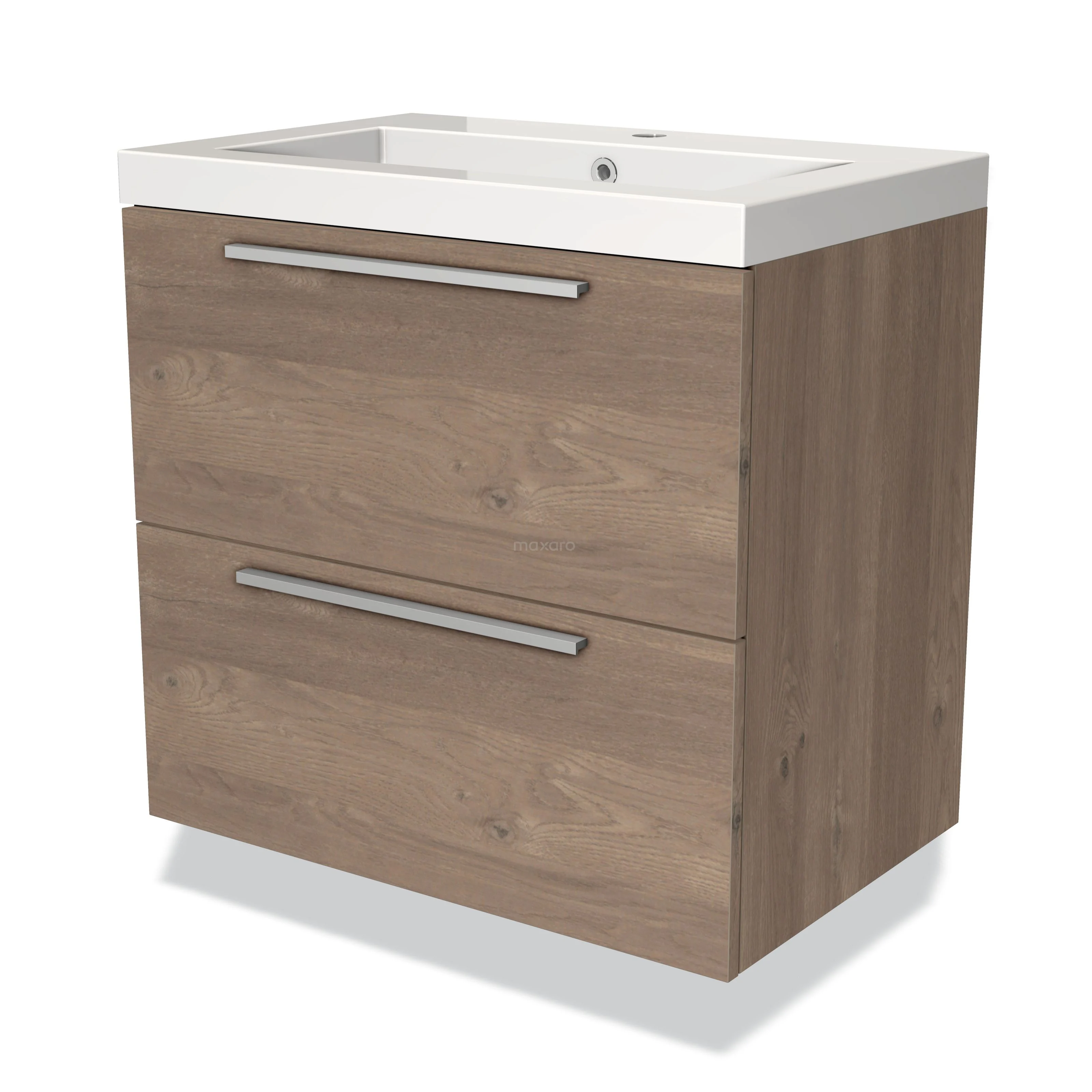 Modulo Bathroom furniture with sink | 70 cm Mid brown oak Flat front Mineral marble 2 Stacked drawers