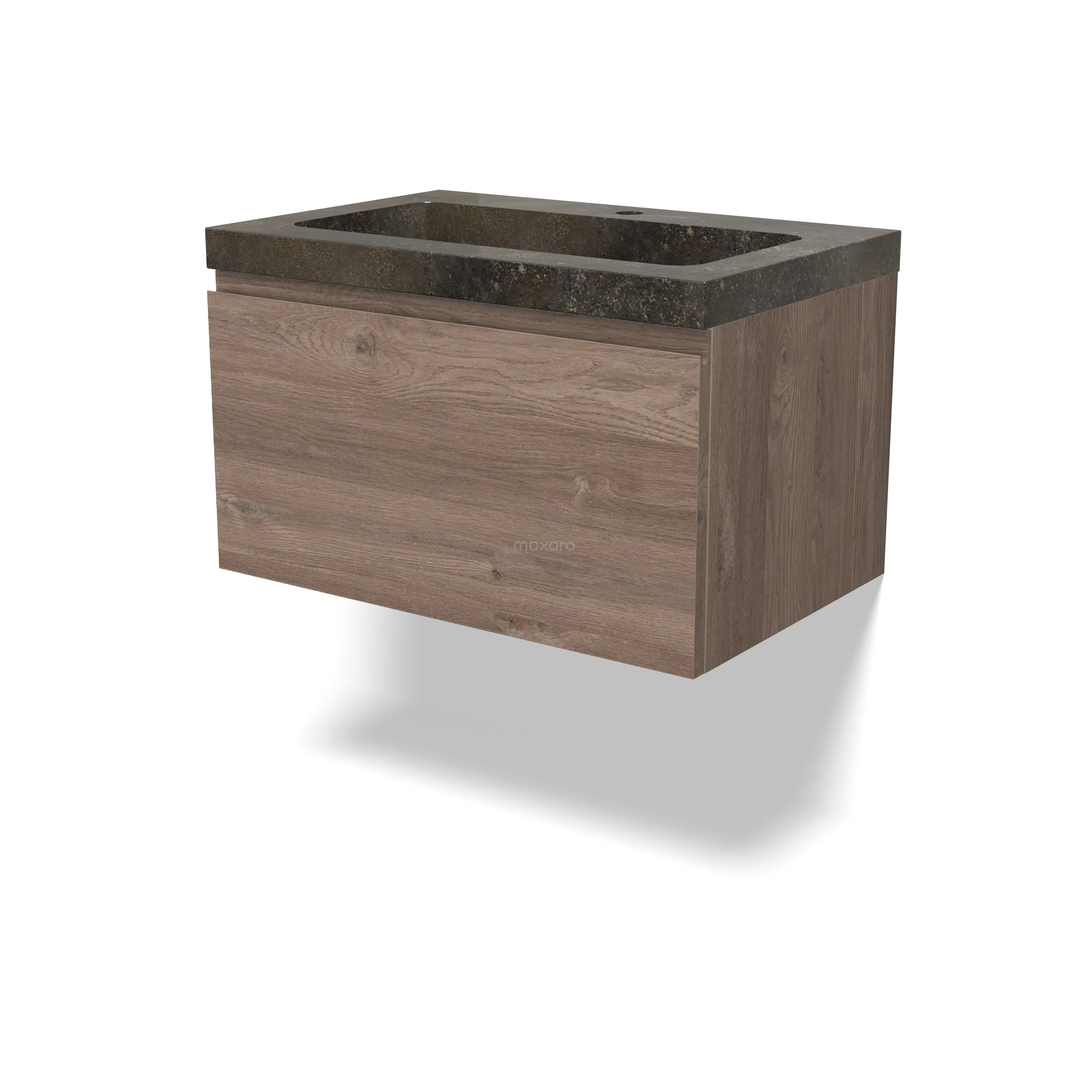 Modulo Bathroom furniture with sink | 70 cm Mid brown oak Handle-less front Natural stone 1 drawer