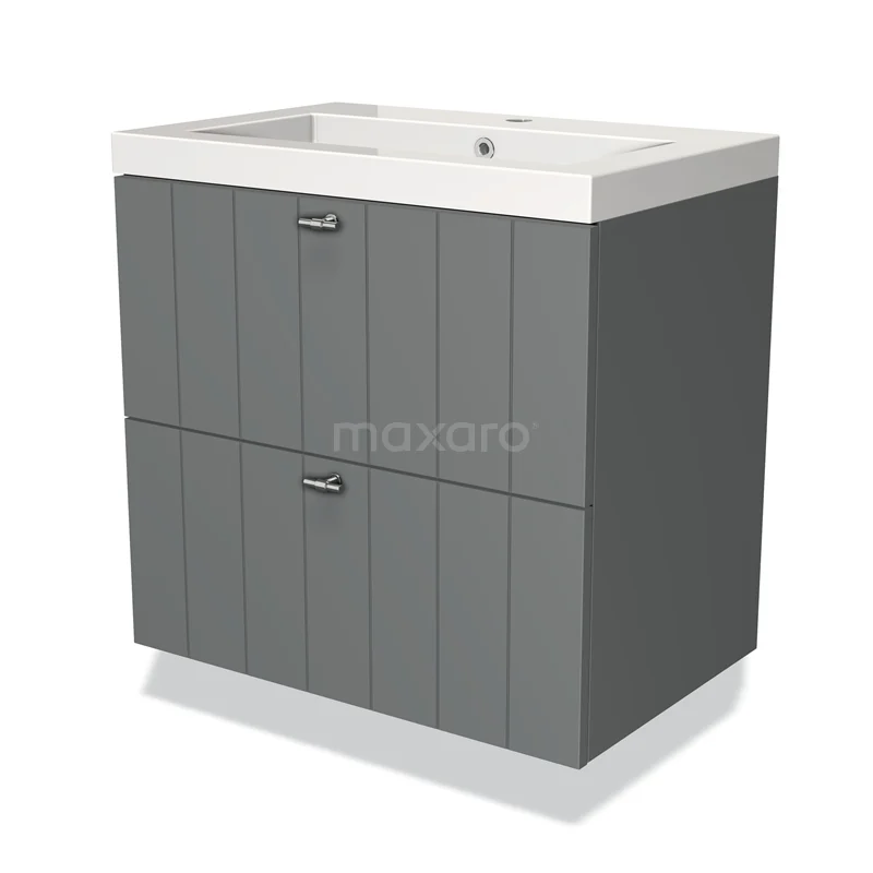 Modulo Bathroom furniture with sink | 70 cm Mid grey Slat front Mineral marble 2 Stacked drawers