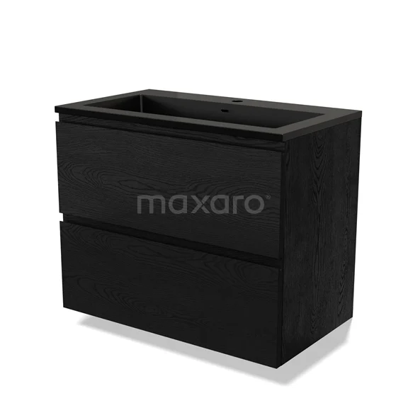 Modulo Bathroom furniture with sink | 80 cm Black oak Handle-less front Quartz 2 Stacked drawers