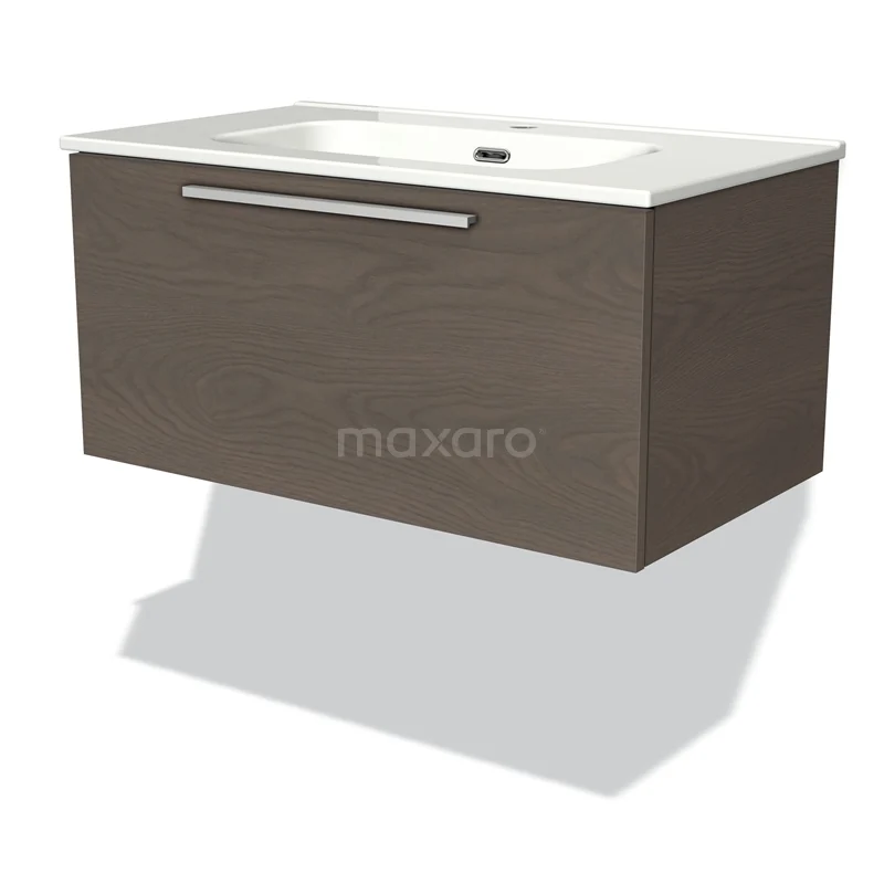 Modulo Bathroom furniture with sink | 80 cm Dark brown oak Flat front Ceramic 1 drawer